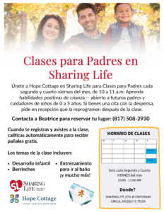 Ubicación: Sharing Life Community Outreach, en el segundo piso, en el primer salón a la izquierda.