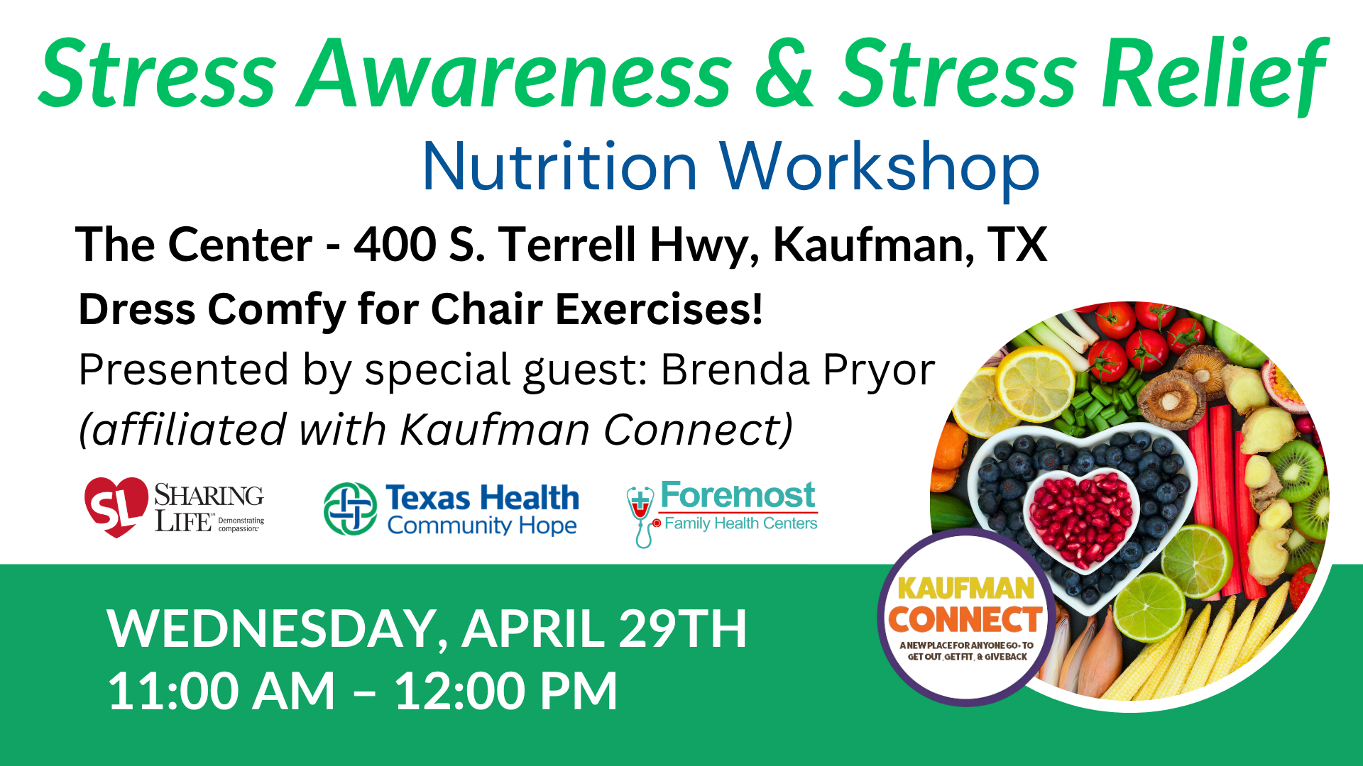 Location: The Center – 400 S. Terrell Hwy, Kaufman, TX